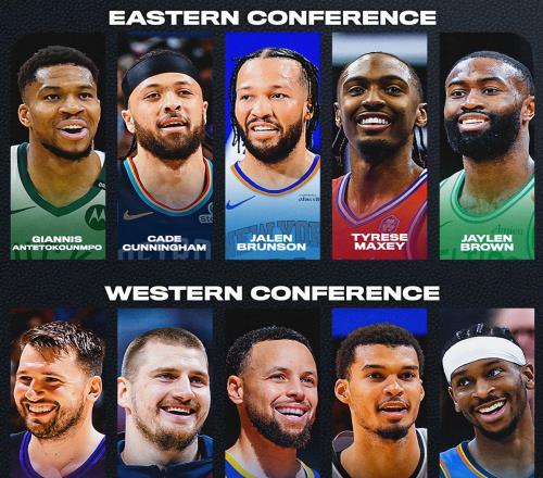 今年的NBA首發陣容出爐了西部首發是東契奇、亞歷山大、庫里、約基奇、文班亞馬 東部首發是字母哥、布倫森...