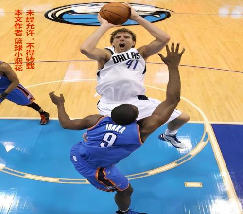西決揭幕戰(zhàn),雷霆就是跟小牛打?qū)Z,而且很顯然對(duì)于進(jìn)攻他們相當(dāng)自信,上半場(chǎng)竟然不去夾擊諾維斯基,他們的自信是有理由的,杜蘭特成為了小牛無(wú)法解決的進(jìn)攻強(qiáng)點(diǎn),無(wú)論是馬里昂,還是史蒂文森還是基德,亦或是其他人,上去統(tǒng)統(tǒng)都是送人頭,杜蘭特18投10中,罰球19罰19中轟下40分,效率奇高,但他的光芒完全被諾維斯基掩蓋住了。