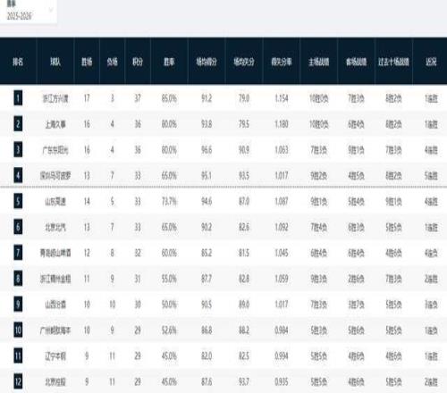 CBA積分榜最新排名!廣廈殺回第一,上海廣東搶第2,新疆遭滑鐵盧