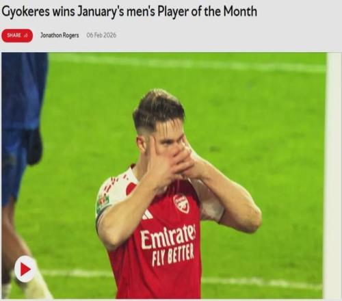 官方:阿森納宣布哲凱賴什當選隊內一月份最佳球員。