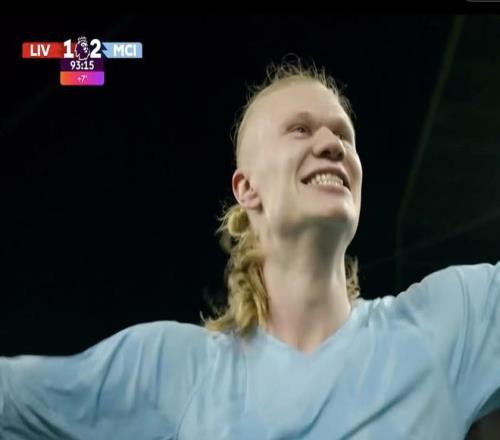 此役客場對陣利物浦,哈蘭德在比賽第93分鐘主罰點球破門,幫助曼城2-1反超比分。