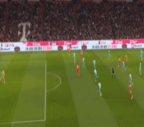 第9分鐘,奧利塞發(fā)揮個人能力,右路內(nèi)切突破,禁區(qū)前沿起腳兜射,鮑曼飛身單掌將球撲出,霍芬海姆逃過一劫。