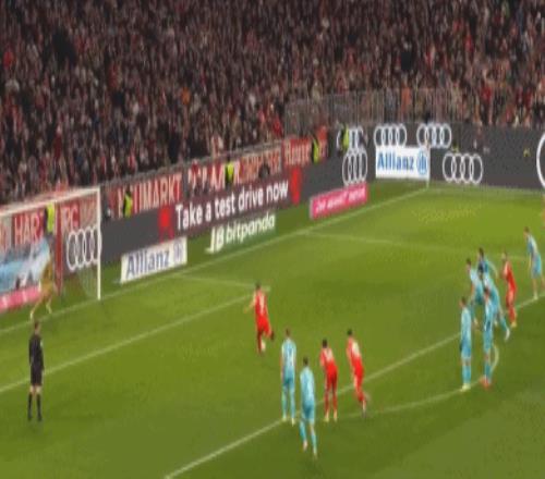 第45分鐘,凱恩再次操刀破門,完成梅開二度好戲,拜仁再度領先,2-1!
