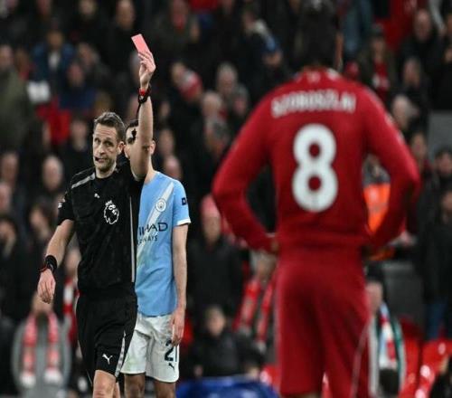也就是說,哈蘭德和索博斯洛伊都有犯規動作,進球應該取消。但后者作為最后一名防守球員阻止對手進球,這是不折不扣的紅牌動作。所以,主裁判直接紅牌將索博斯洛伊罰下,而哈蘭德也被判犯規,曼城的進球被判無效。不過,索博的下場并沒有給球隊換回1次進攻機會,主裁判隨后直接吹響了全場結束的哨聲,利物浦最終主場1-2落敗。