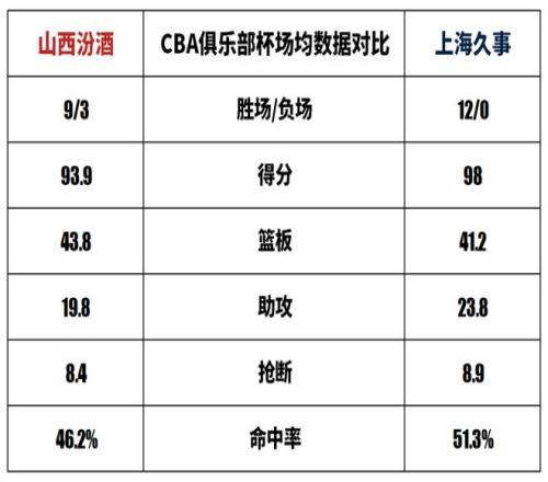 CBA俱樂部杯場均數(shù)據(jù)對比