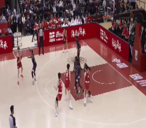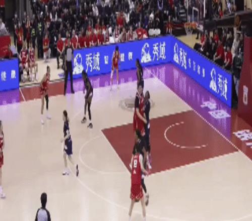 兩隊在第三節后半段落入到陣地戰,打的比較膠著。而王思雨留在場上,手感也不錯,三分命中!