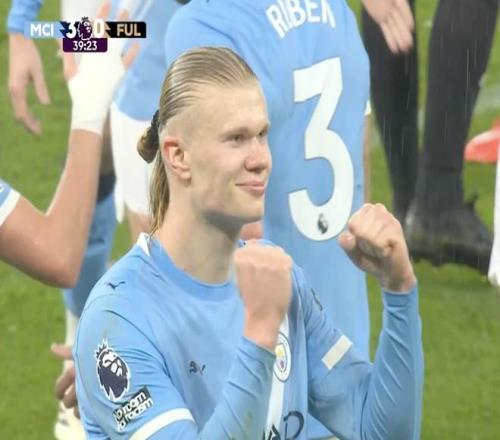 此役主場對陣富勒姆,哈蘭德在比賽第39分鐘打入一球,幫助曼城取得3-0領先。