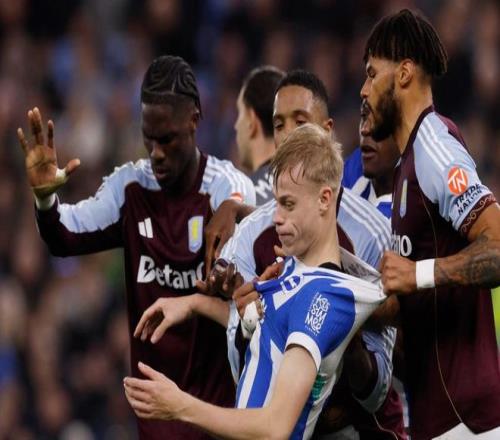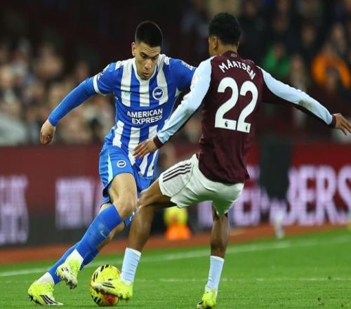 比賽剛剛開始2分鐘,巴萊巴就因?yàn)榉敢?guī)被出示黃牌。第15分鐘,沃特金斯禁區(qū)內(nèi)搶點(diǎn)頭球攻門,皮球彈地后偏出了球門。5分鐘后,摩根-羅杰斯在禁區(qū)右側(cè)小角度射門,門將把球擋了出去。第22分鐘,布萊頓進(jìn)行換人調(diào)整,巴萊巴被換下場,米爾納替補(bǔ)上場。