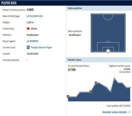 德國轉會市場網最新信息顯示,門將齊雨熙以自由身的方式加盟天津津門虎,雙方的合同年限暫不清楚。