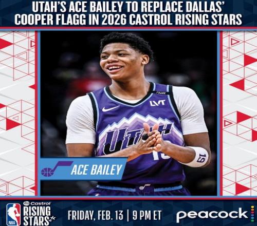 在弗拉格與薩爾因傷缺席全明星新秀挑戰(zhàn)賽情況下,他們的頂替者出爐,分別是爵士新科5號(hào)秀貝利,他本賽季場均得到11.6分3.8 籃板,以及奇才2024年14號(hào)秀卡林頓,他本賽季場均得到10.2分3.5籃板4.6助攻。