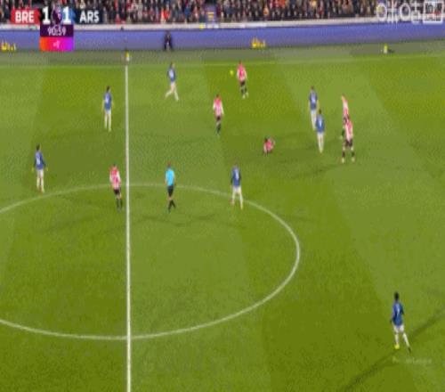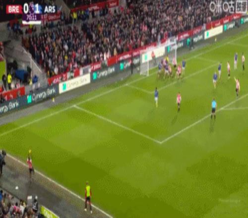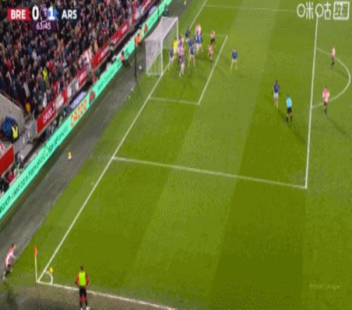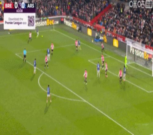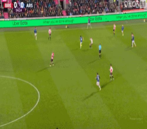 第61分鐘,馬杜埃凱禁區躍起頭球破門,阿森納1-0布倫特福德