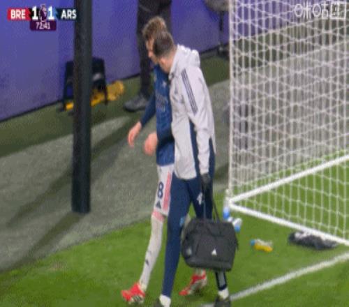 第73分鐘,厄德高出現受傷狀況,隊醫上場治療