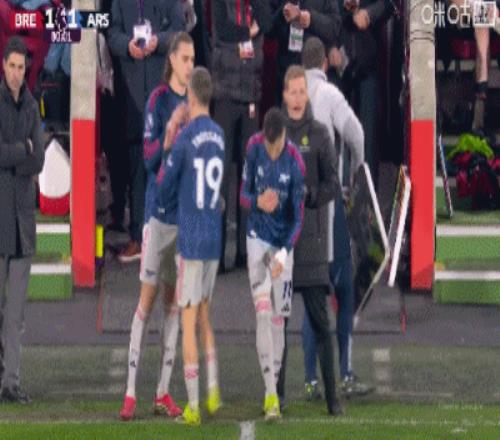 第18分鐘,布倫特福德教練不滿判罰,被裁判黃牌警告