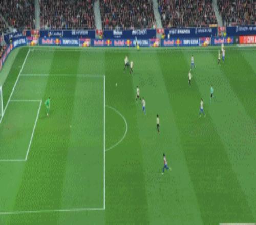 第34分鐘,阿爾瓦雷斯助攻,盧克曼輕松推射破門,馬競三球領先