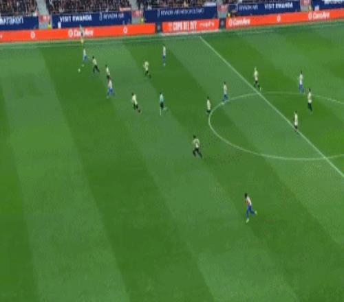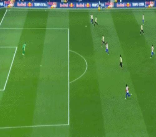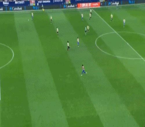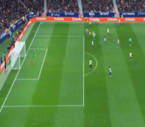 第24分鐘,巴薩的高位防線再次被打穿,朱利亞諾-西蒙尼右路推進,禁區內無私橫傳,阿爾瓦雷斯迎球推射,孔德在門線前解圍。
