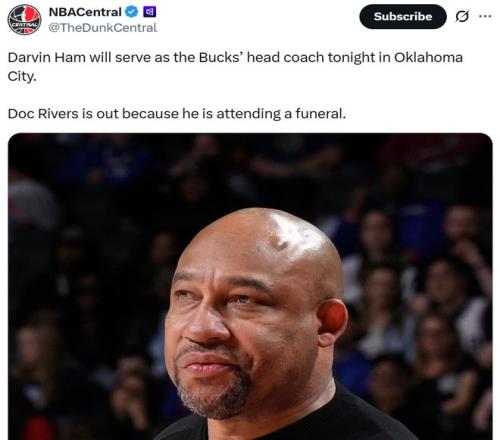 大爆冷!里弗斯缺席,助教哈姆臨危受命重掌教鞭率隊掀翻衛冕冠軍雷霆,殘陣雄鹿7人上雙助超級黑馬活塞奪聯盟第一寶座。