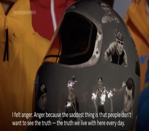 26歲的烏克蘭鋼架雪車運動員赫拉斯克維奇來到米蘭,但不能參賽,因為他佩戴了一個特別的頭盔。