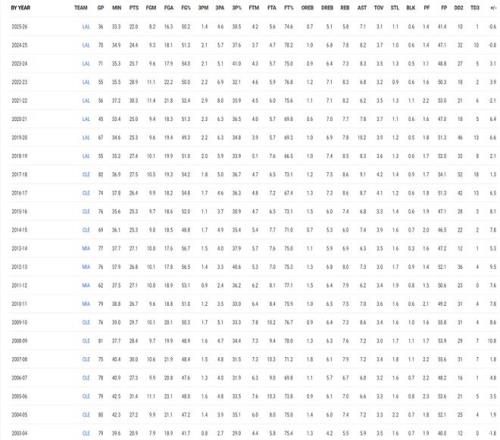 勒布朗詹姆斯本賽季延續了生涯連續23個賽季的場均20+5+5,這也是NBA唯一的神跡,職業生涯場均26.9分7.5籃板7.5助攻1.49搶斷0.74蓋帽,別說連續23個賽季場均20+5+5,就是連續23個賽季場均20+都只有勒布朗獨一份。