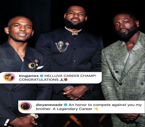 詹姆斯在保羅退役后發推:“無比偉大且成功的職業生涯,恭喜克里斯-保羅!”保羅是2005年進入NBA,他在聯盟打了21個賽季,四次一陣、五次二陣、七次一防、5次搶斷王、6次助攻王、12次全明星。